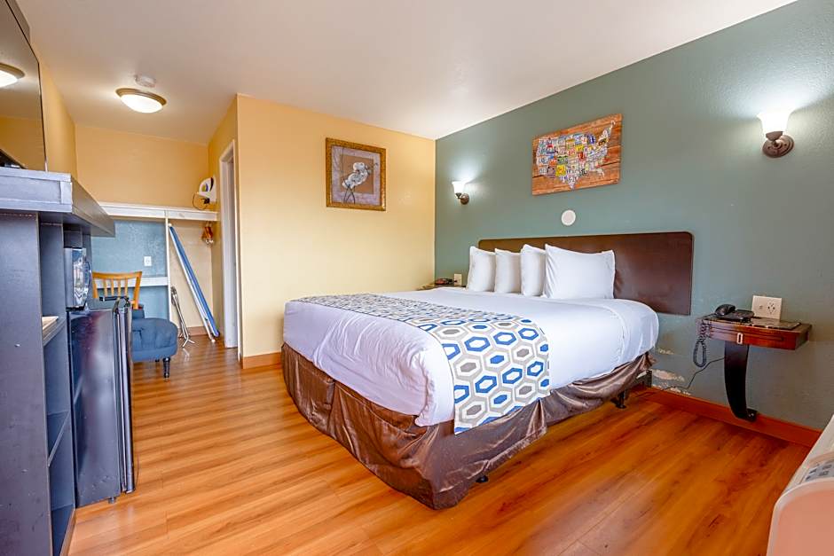 This air-conditioned disability access room has a flat-screen satellite TV, a microwave and a refrigerator.